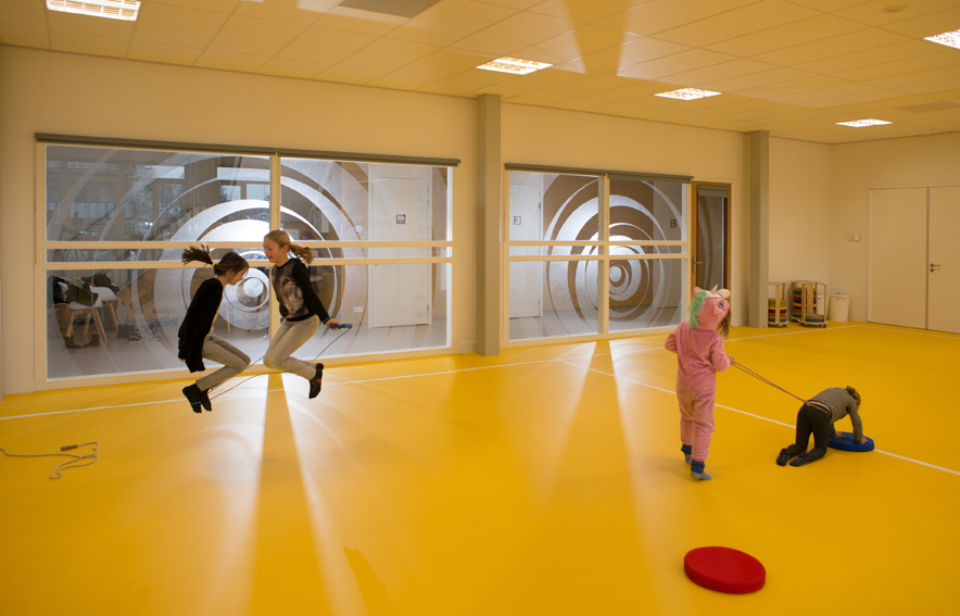 Nutsschool M.M. Boldingh and Christelijk College de Populier MAVO share the same new building. It is a marriage of for the two schools. The artist Bob Waardenburg was invited to create a new public artwork for the new school building. He designed a spiral-shaped Vortex, which was engraved by hand in the windows and walls made of glass.
