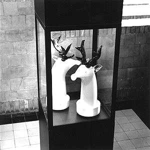Hans van Bentem designed showcases as austere columns, filled with “brilliant” glass objects (produced in the Czech Republic). He wanted to ensure that the objects in the various showcases rotated and possibly replaced between the participating schools, involving references to motifs and styles from art history.