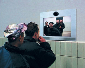 The artists Harco Haagsma and Jannes Linders worked together, yet each separately, on a commission for the Vakschool voor Horeca, Handel en Techniek in The Hague Zuid West. In the hallway of each of the three floors, Harco Haagsma installed a plasma screen with a built-in digital camera showing random shots of the school's students. Jannes Linders installed a frieze on the ceiling beams in the cafeteria. This is composed of series of photographs of hairstyles, jewelry and hands of schoolchildren. A large photograph of a bar at Schiphol Airport is mounted on the back wall, offering a view of the outside world. High-edition notebooks were printed for the entire school whose covers refer to the works.