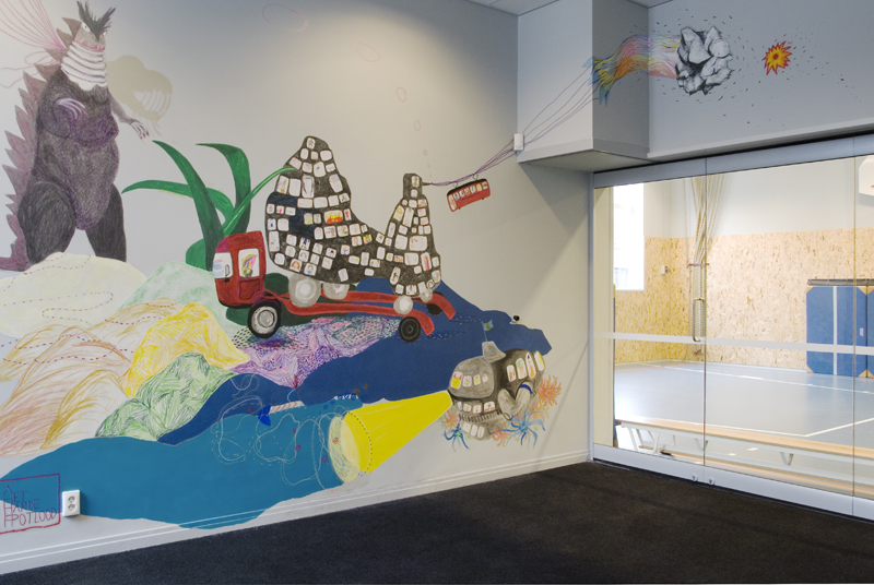 The artwork was realised as part of the municipal scheme ‘art in schools’ and was supervised by Stroom Den Haag.