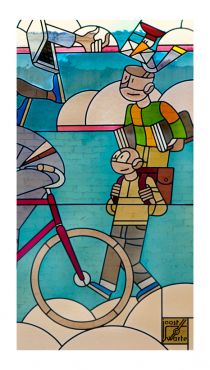 The Bavinckschool is a typical example of a school building from the early 1900s, complete with glazed columns and a magnificent stairwell. During the renovations the stained-glass windows were removed from the stairwell. This was experienced as a great loss. Stroom Den Haag set out on a search for artists specialized in working with glass and windows. This led us to Joost Swarte who, in addition to his work as an illustrator, is a great specialist in this field.