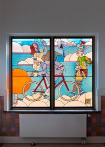 Joost Swarte, glas-in-lood raam Bavinckschool (detail) foto: © Gert Jan van Rooij, courtesy Stroom Den Haag