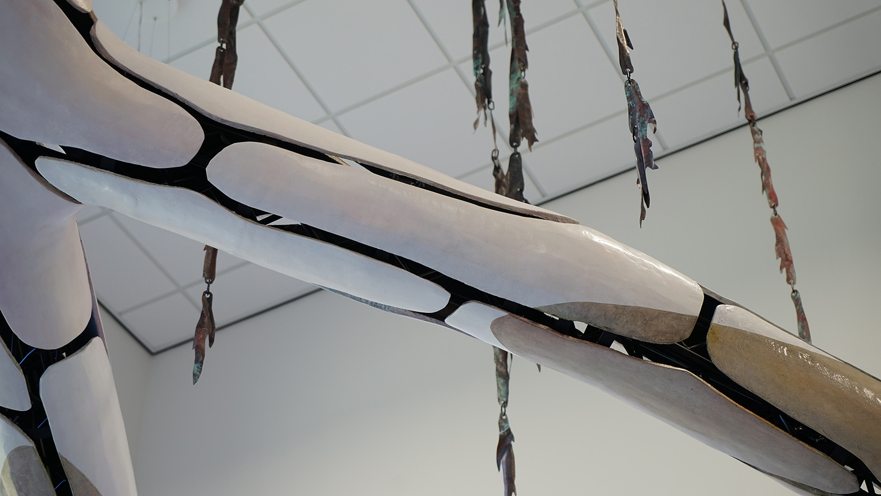 With the new installation Waterbos (Hideout) in the central hall of the child center in Vroondaal, Lisa Sebestikova makes the link between the pupils and the environment where the new center was built. Adjacent to the building, a "wet ecological zone" (NEZ) has been created to promote biodiversity in the area. There, fish, small reptiles and birds can live in peace, protected by different types of vegetation and branches. With that fact, the artist tries to connect the center with the environment.