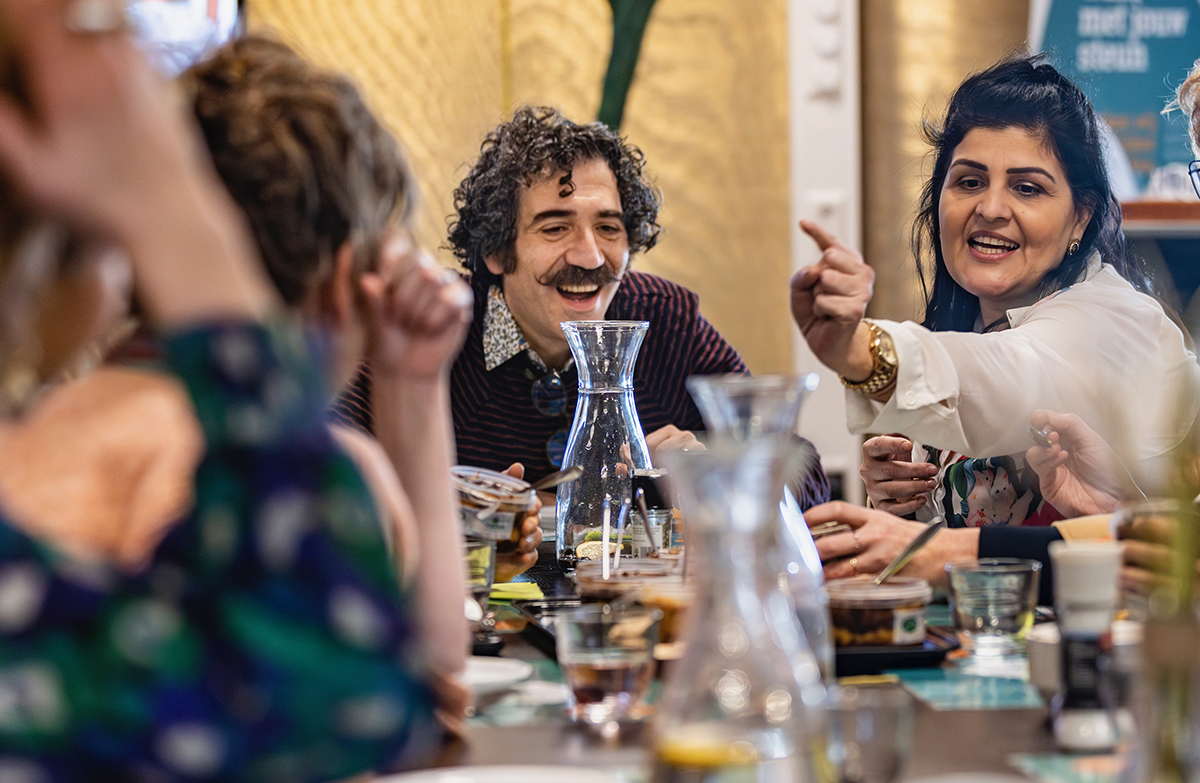 For Rakowitz, each new artwork is preceded by an intensive research process in which he actively involves both local and international communities. For the commission in The Hague, he spoke with many people from migrant communities during his visits to the city, with whom he aims to collaborate. Central to the project is his partnership with the Participatie Keuken (Participation Kitchen), an initiative by Ben Lachhab that builds on the idea that every person wants to feel seen, heard, and valued. Sharing meals and stories is seen as a way to collectively work toward a livable society.