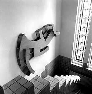 Mieke van den Hoeven designed a wooden relief with loose segments, which can be arranged in different ways.