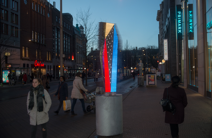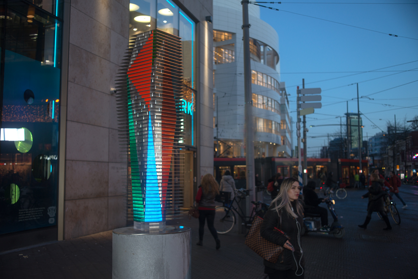 On Wednesday, December 19, 2018, the new sculpture RE/FLECT/OR by internationally renowned artist Navid Nuur was added to De Beeldengalerij in the center of The Hague. It is no coincidence that this sculpture was unveiled near the shortest day of the year: the sculpture comes to life through artificial light.