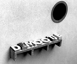 Boolman used words and expressions coming from typically used police jargon in The Hague for her letter sculptures that hang on the wall. Since the letters are stacked on and next to each other as sculptural forms, words like ‘gemeentesleutel' or ‘demootje' are difficult to read.