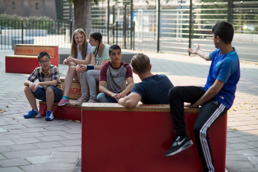 The benches are all connected by means of an underground hydraulic system. When you sit on a bench it will slowly lower you down to the ground. At the same time, on another bench in the schoolyard the exact opposite is happening. Because the benches are connected, very user becomes aware of his or her location. This creates an opportunity to communicate.