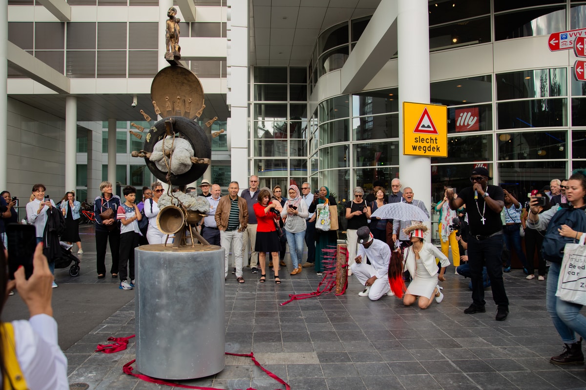 A new sculpture by Tirzo Martha, entitled De dematerialisatie van de vijf geboden in de vijf zintuigen (The dematerialization of the five commandments in the five senses) is the latest addition to The Sculpture Gallery in the City Center of The Hague. This same year Tirzo Martha (Curaçao, 1965) was unanimously chosen as the winner of the 11th Wilhelminaring - the oeuvre prize for Dutch sculpture.