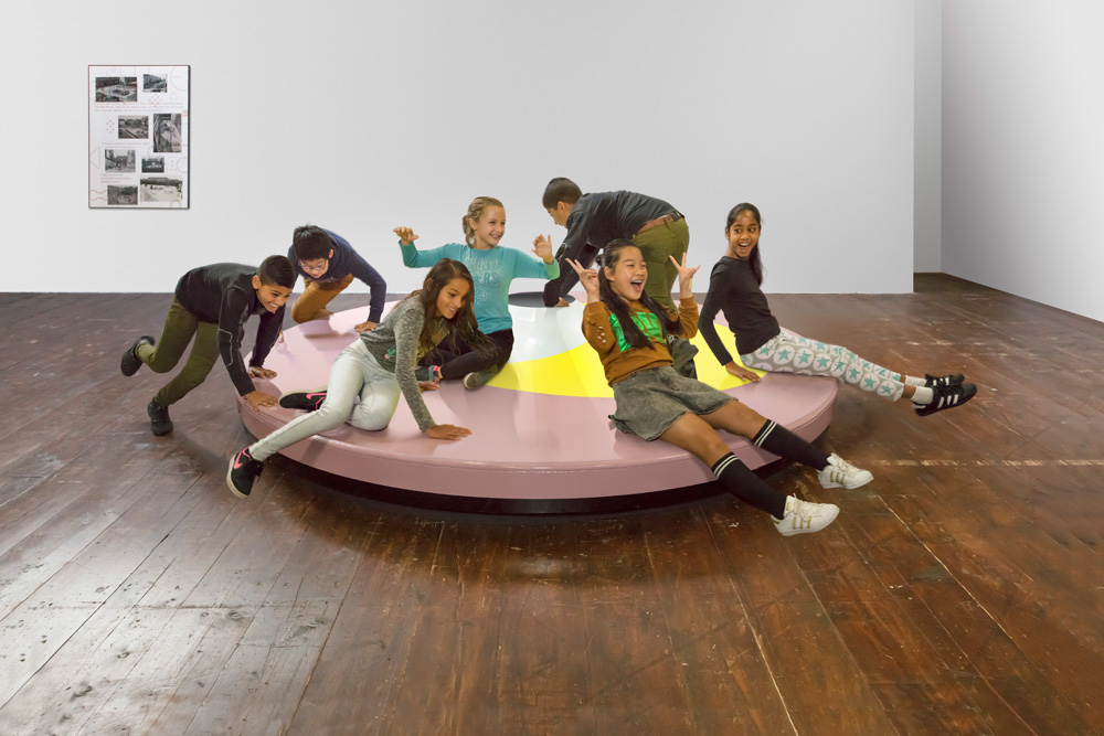 Céline Condorelli considers exhibitions as constructions through which we apprehend the world, which allow us to rehearse possibilities for making things public. In this way, after this exhibition, the carousels will be permanently relocated to the playgrounds of two local schools in The Hague, whose children have been actively involved as researchers throughout the process and development of the project. By testing the relationship between exhibition practices and public art, by pedagogical experiments from gallery to school, this exhibition investigates and outlines possible roles for children and artists in society.
