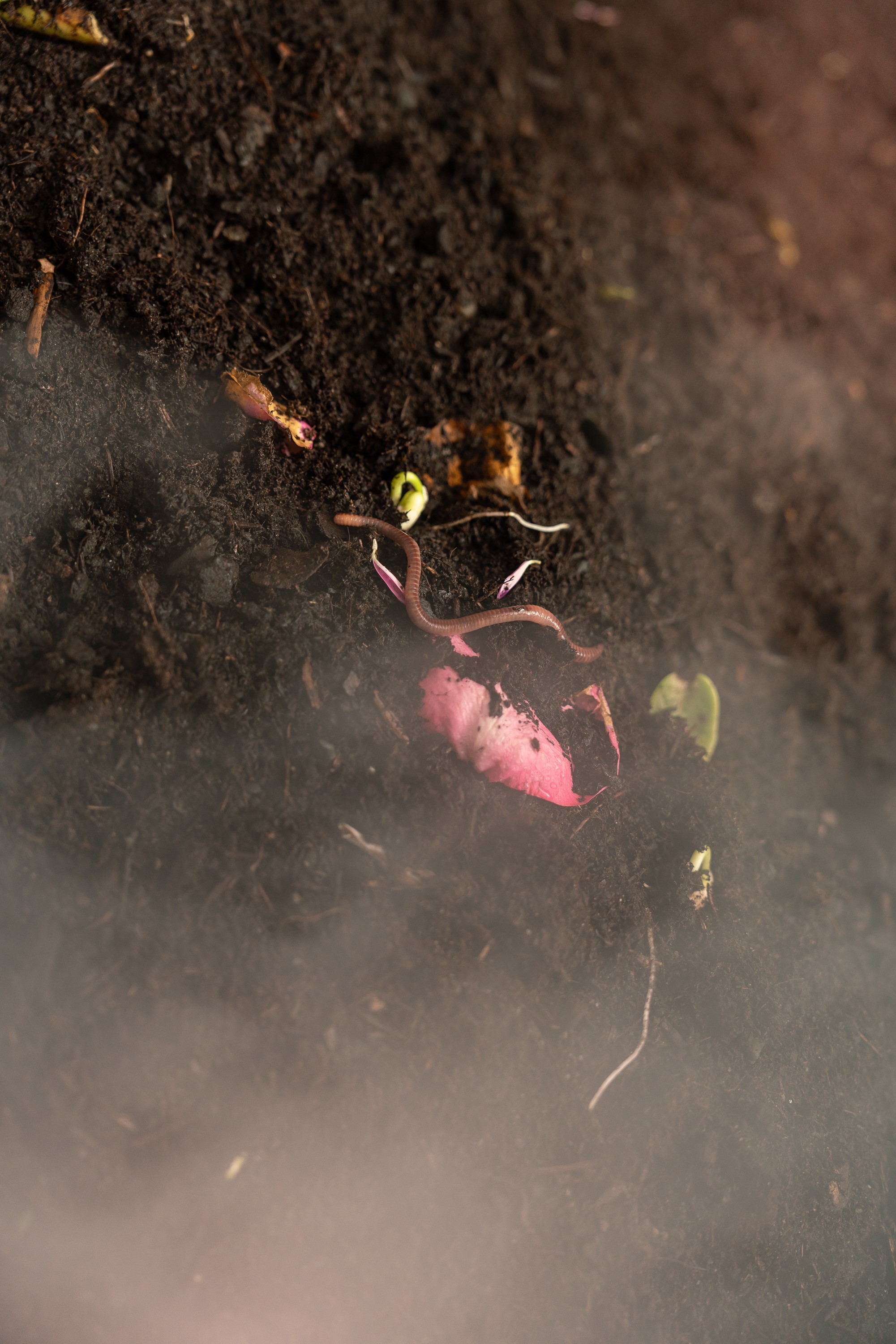 The starting point of this exhibition is the concept of ’tech povera’, a makeshift genre that Sutela coined to describe her approach to technology in the context of art. It refers to the 20th century art historical movement Arte Povera that saw art as a living process rather than a fixed object and materials as meaning. Vermi-Cell (2023), a work presented underground at Stroom den Haag, serves as an example of this approach. An earth battery powered sound piece, staged inside and around heaps of worm compost with metals and wire emerging from them, uses energy from the organic, decomposing matter to present a work and as a work.