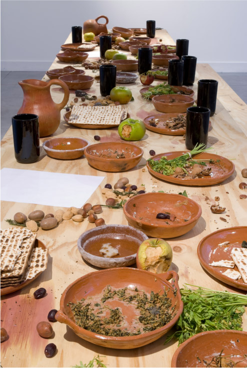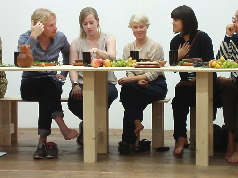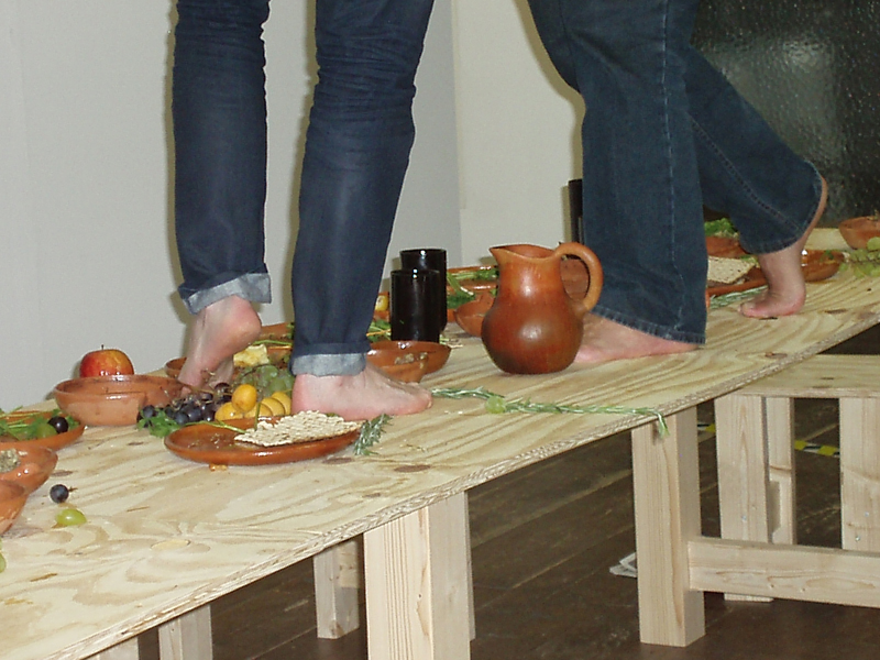 Raul Ortega Ayala: ‘The Last Supper’ During the first Museumnacht Den Haag, Stroom Den Haag presented the performance 'The Last Supper', in which the boundaries between the earthly and the sacred were explored. The first visitors at Stroom were invited by Mexican artist Raul Ortega Ayala to sit at the table and were given a unique opportunity to partake in the Last Supper. The 'exact' meal was served, including the associated rituals, based on research by food historian Daniel Rogov, as Christ and his Apostles must have enjoyed it. It was not a solemn gathering, but a relaxed or even rowdy evening... The public was welcome to observe this scene. The Supper was filmed, and the edited version of this video, along with the remnants of the meal, formed part of the exhibition 'Living Remains' by Raul Ortega Ayala (September 11 to November 7, 2010, at Stroom Den Haag).