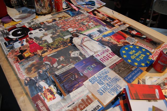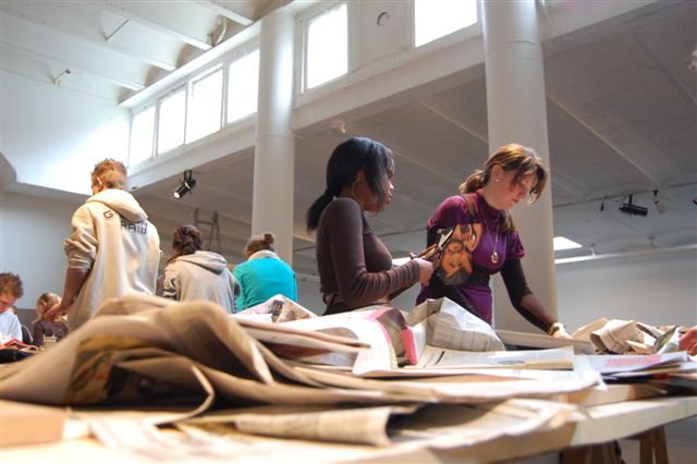 Divided into small groups, participants will create collages from images and text taken from recent national newspapers and magazines. From any given magazine, cliché images, slogans, or idealized representations can be extracted. This process will reveal how many opinions are already shaped for us by the media. The final monument will be based on these collages.