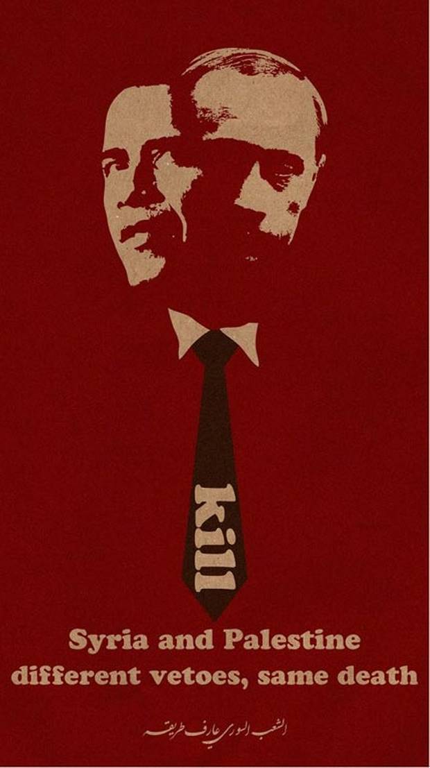Visitors to the Middle East are immediately struck by the use of graffiti and posters on the walls of houses and buildings: there is a constant war going on between the various political factions, spraying tags on each others posters or tearing off messages. The members of Alshaab Alsori Aref Tarekh also designed posters, clandestinely shared them over the internet (as print-on-demand) and thus rebelled against the monolithic iconography of Assad in Syria's public space.