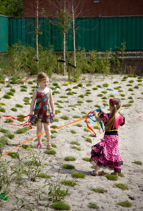 Kunstenaar en hovenier Bas Witlox maakte het ontwerp voor de buitenruimte bij de nieuwbouw van basisscholen De Meerpaal en De Tweemaster. De buitenruimte is in meerdere opzichten uniek: ongewoon groot (2100m2) en op een zeer bijzondere locatie: het duingebied aan de Haagse kust. Witlox heeft de wensen van beide scholen verwerkt in verschillende ‘tuinen' die worden verbonden door het centrale schoolplein; een vormgeving waarbij de duinen en de zee de leidraad vormen. De ‘duintuin' is een multifunctionele ontmoetingsplek waar kinderen fijn kunnen spelen maar ook kunnen leren, waar ouders en buurtgenoten kunnen genieten van de natuur en met elkaar in contact komen.