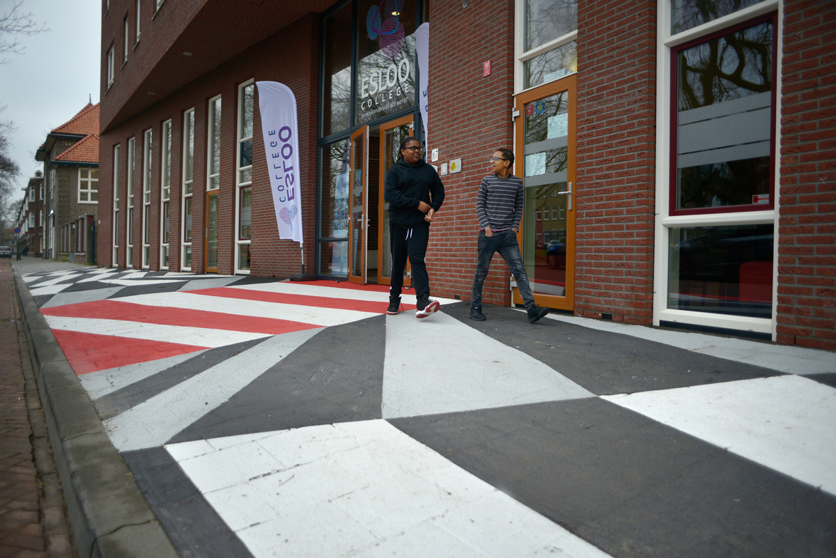 Sinds augustus 2018 heeft Harold de Bree op de stoep van het Esloo College gewerkt aan Dazzle Painting. Veel leerlingen, ouders en wijkbewoners reageerden meteen enthousiast en het kunstwerk heeft nu al een vanzelfsprekende aanwezigheid. Het werk creëert een aparte ruimte waardoor het gebouw van de school als het ware op een sokkel wordt getild. Door de vrolijkheid en aard van het werk heeft het naar verwachting ook op toekomstige generaties leerlingen een grote impact.