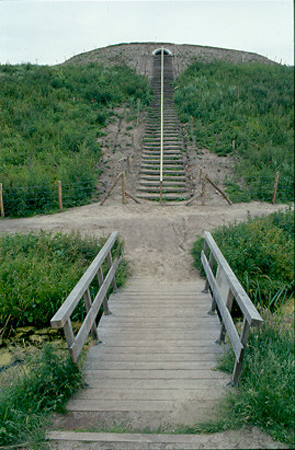 Op de top van een van de puinduinen is een kom aangelegd in de vorm van een ellips, 30 meter breed, 40 meter lang. Een aarden wal van ongeveer 5 meter hoog omsluit de kom. Om in deze kunstmatige krater te komen loop je eerst over houten treden het duin op en vervolgens door een betonnen doorgang van 6 meter lang. De glooiïngen aan de binnenkant van de krater zijn ingezaaid met gras en in het midden staat een monumentale bank van natuursteen waarop twee personen achterover kunnen liggen en kunnen zien hoe de hemel de vorm van een gewelf kan aannemen. Op een hoger gelegen duin staat eenzelfde bank waar zich een panorama ontvouwt over de zee, het strand en het platte land daarachter. In de richting van de horizon wordt het gewelf geleidelijk platter.