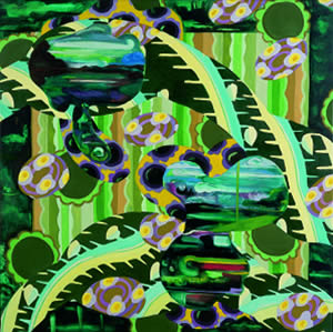 Van het begin af aan heeft het werk van Christie van der Haak een sterk decoratieve inslag gehad. Het begrip decoratie wordt nog wel eens verkeerd ingeschat. In onze cultuur wordt het meestal gezien als ‘ornament': als iets dat iets anders versiert maar zelf niets is. In een iconoclastische cultuur als de Islamitische, waar afbeelding verboden is, is decoratie altijd een inhoudelijke waarde geweest. In de schilderijen en keramieken schalen van Christie van der Haak worden decoratieve patronen gebruikt om - elkaar vaak tegensprekende - ruimtes te creëren waarin figuratie wel een bepalende rol speelt maar altijd in relatie tot de abstractie van de duizelingwekkende patronen. Steeds is er sprake van conflict en oplossing, van paradox en congruentie: het oog vindt in deze schilderijen geen rustpunt en steeds als het denkt een vaste structuur en opbouw te hebben gevonden wordt die weer onderuitgehaald door een andere passage in het schilderij. Voorgrond en achtergrond wisselen stuivertje binnen één beeldvlak, de ruimte is onduidelijk. Daardoor gaan deze schilderijen (onder meer) over de positie van de ordenende hand, die van de kunstenaar, in een tijd waarin iedere ordening aanvechtbaar lijkt. (Tekst: Philip Peters)