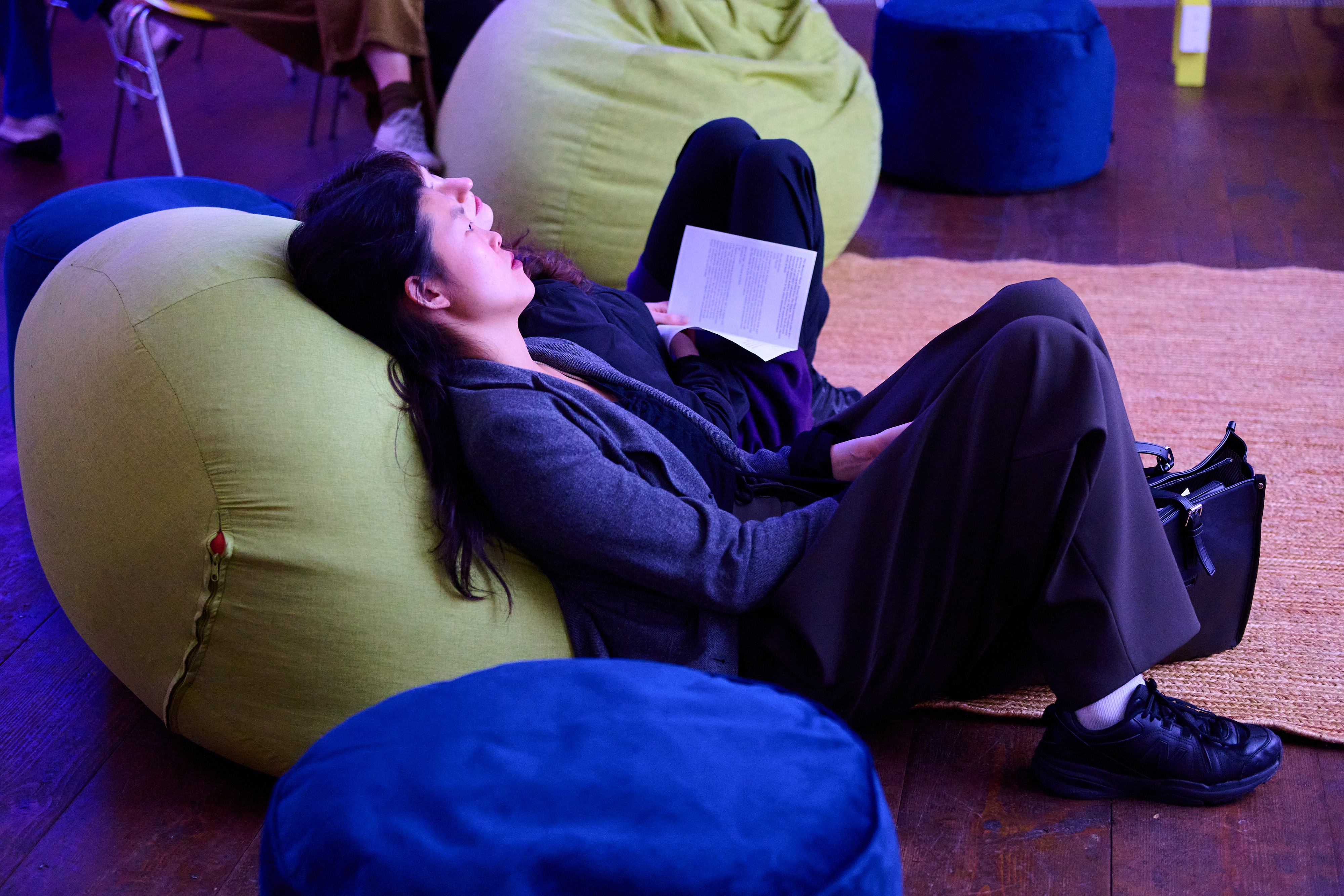 Jenna Sutela’s tentoonstelling Ave bossa, bow ole is een zintuiglijke, bijna buitenaardse omgeving waarin alles met elkaar samenhangt – van microscopisch leven tot zelfgebouwde technologieën. Haar werk is een ode aan onderlinge relaties, aan systemen die voelen, reageren en zichzelf blijven vernieuwen.