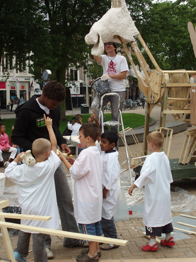 Unieke workshop door professionele kunstenaars met jongeren van de Nederlandse Antillen voor jong en oud in Den Haag t.g.v. de Koninkrijksspelen 2007