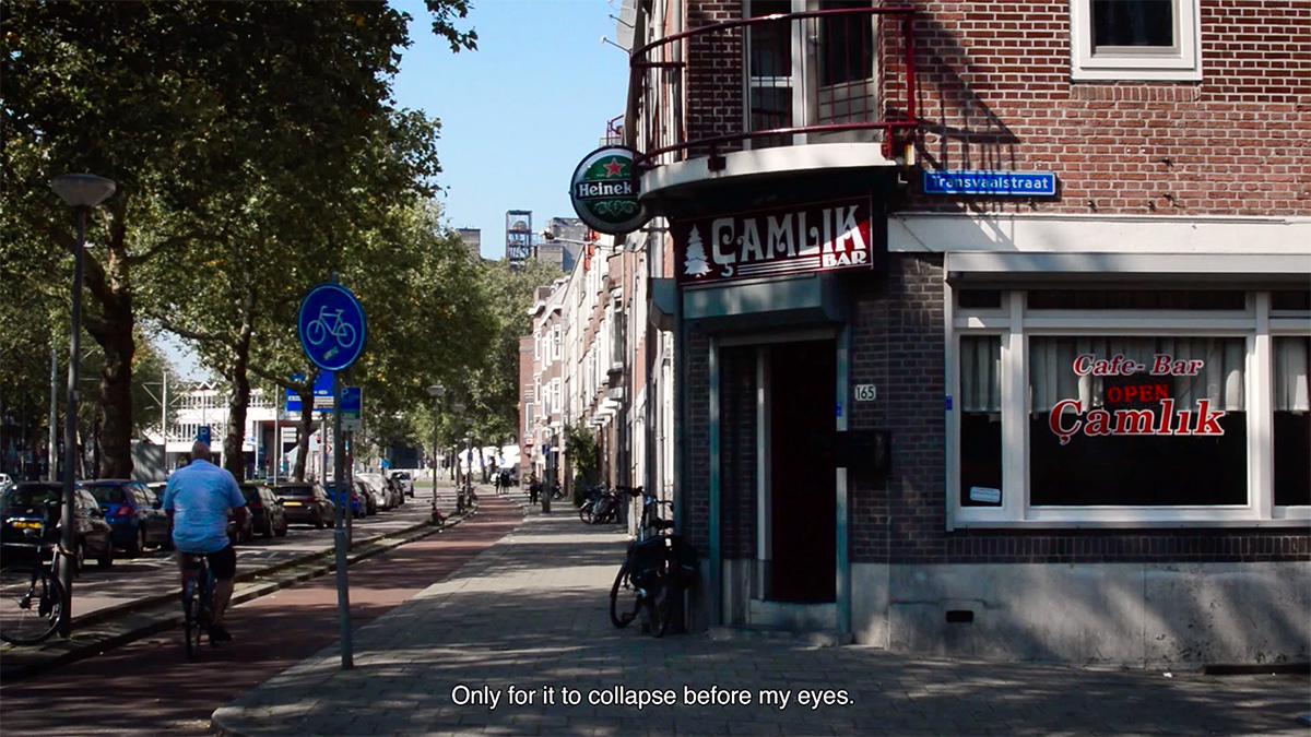 Hannah Dawn Henderson will present a prose-essay on her film Testament and the extensive research that accompanied its making. Testament paints a poetic picture of the Afrikaanderwijk in Rotterdam. The neighbourhood's urban landscape embeds three events that point towards its its past, present and prospective future. These events are: 1) the creation of the neighbourhood and the naming of its streets, 2) the 1972 riots that saw a violent eruption of xenophobia underpinned by economic deprivation, and 3) the forthcoming renovation of Tweebos, an area within the wider neighbourhood which will entail the displacement of current residents per the demolition of social housing. In light of this research, Henderson will speak to how the film relates to the recurring motifs and thematics in her work, such as displacement and diaspora.