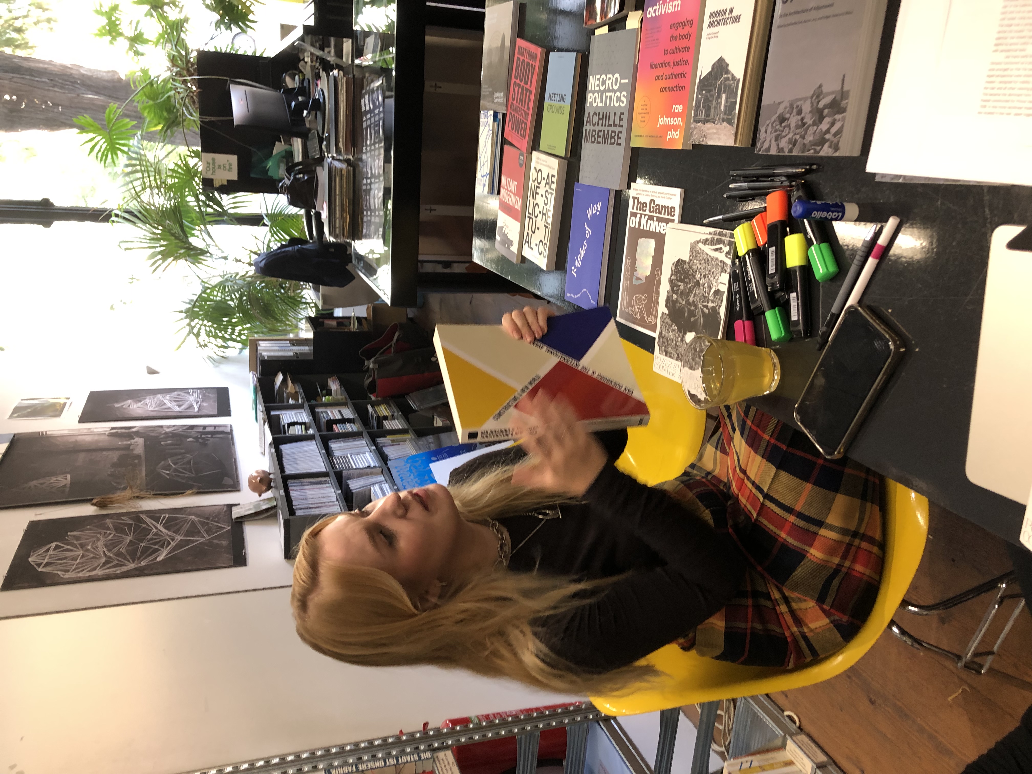 Daarom werden niet alleen boeken uit Katerina's eigen collectie besproken, waaronder Embodied Activism en Rights of Way, maar ook een brede selectie uit de Stroom Bibliotheek, zoals Protest Architecture en Rebel Cities van David Harvey, en haar eigen boeken, waaronder Martyrdom, Body, State, Manifesting Power en The Game of Knives. Voorafgaand aan de sessie heeft Katerina een zine gemaakt met citaten van denkers die voor haar belangrijk zijn, zoals Foucaults gedachten over de introductie van de term biopower, stukken uit Hobbes' Leviathan en Revolution without Revolutionaries, van Asef Bayat, die in dit boek over de Arabische lente, beschrijft hoe rotondes, door staten bedoeld als functionele infrastructuur, podia van verzet werden. (Opmerkelijk detail: door het Malieveld in Den Haag aan te wijzen als goedgekeurde plek voor demonstraties, heeft de staat ervoor gezorgd dat mensen de kans krijgen om zich uit te spreken, zonder dat dit opvalt en zonder dat dit enige verstoring in de stad veroorzaakt).