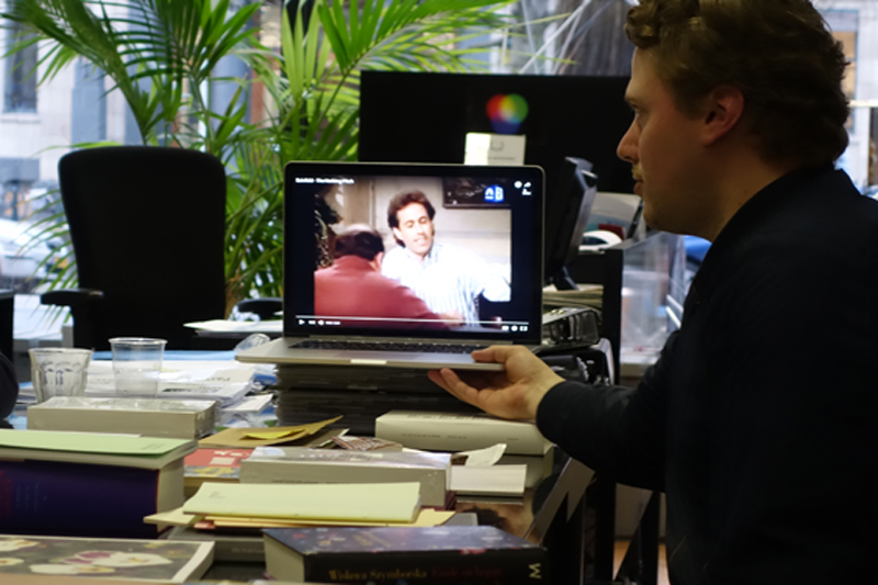Die aandacht voor dingen die als iets vanzelfsprekends worden aangenomen maar die bij nadere inspectie zo bijzonder blijken te zijn herkent hij bij zijn favoriete dichter, de Poolse Wislawa Szymborska, en de Argentijnse schrijver Jorge Luis Borges, en ook bij kunstenaars als Hans-Peter Feldmann en Daan van Golden. Na het voordragen van een aantal gedichten waaronder ‘Een ui' en ‘Een bijdrage tot de statistiek' van Szymborska, liet hij een fragment zien uit de sitcomSeinfeld, waarin de hoofdpersonen brainstormen over ‘a show about nothing'. "Everybody makes shows about ‘something', we do it about ‘nothing'".
