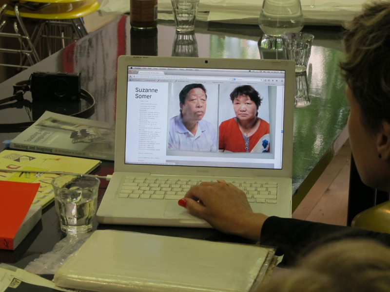 De hoofdgast van de bibliotheeksessie op vrijdag 20 juni was de jonge kunstenaar Suzanne Somer. Die middag spraken we met elkaar over haar werk, haar reizen, en inspiratie(bronnen). Afgelopen voorjaar was zij vier maanden in China, waar zij artist-in-residence was op uitnodiging van Red Gate Gallery in Beijing. In China werd zij getroffen door de openheid van de mensen en de aardsheid van hun filosofie, die niet te vergeestelijkt of te verfijnd is, en bovendien een zeer sterke vormtaal bezit. In Beijing heeft Somer vooral veel materiaal verzameld, direct van straat opgeraapt of door anderen gevonden en aan haar doorgegeven. Deelverzamelingen worden samengebracht in publicaties, en worden gebruikt als materiaal voor installaties.